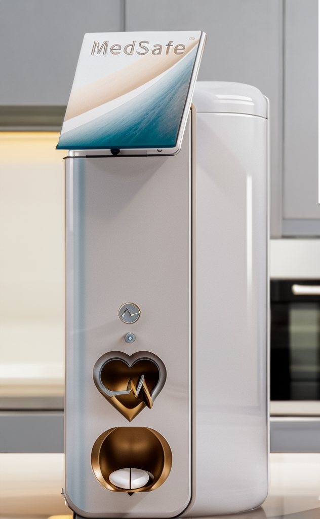 MedSafe™ addresses the problem of available opioids to both the patient and the immediate members of the household, by locking the medication in a safe tamperproof delivery device. The MedSafe is delivered to the patient preloaded with the doctor’s prescription and instructions for dispensing to the patient. The patient will set up the MedSafe to recognize, a fingerprint, photo-recognition, or numeric code. Once the device is set up, there is no need to do it again. The device will notify the patient with a gentle sound and light that it is time to take the medication. It can also send a message to the patient’s cell phone, or a supervising caregiver for monitoring.
